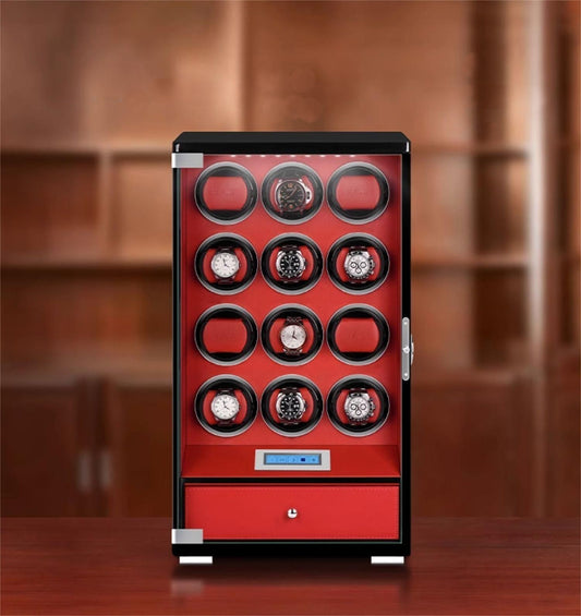 12 Wooden Watch Winder Box for Rolex with 1 Storage Space - Red